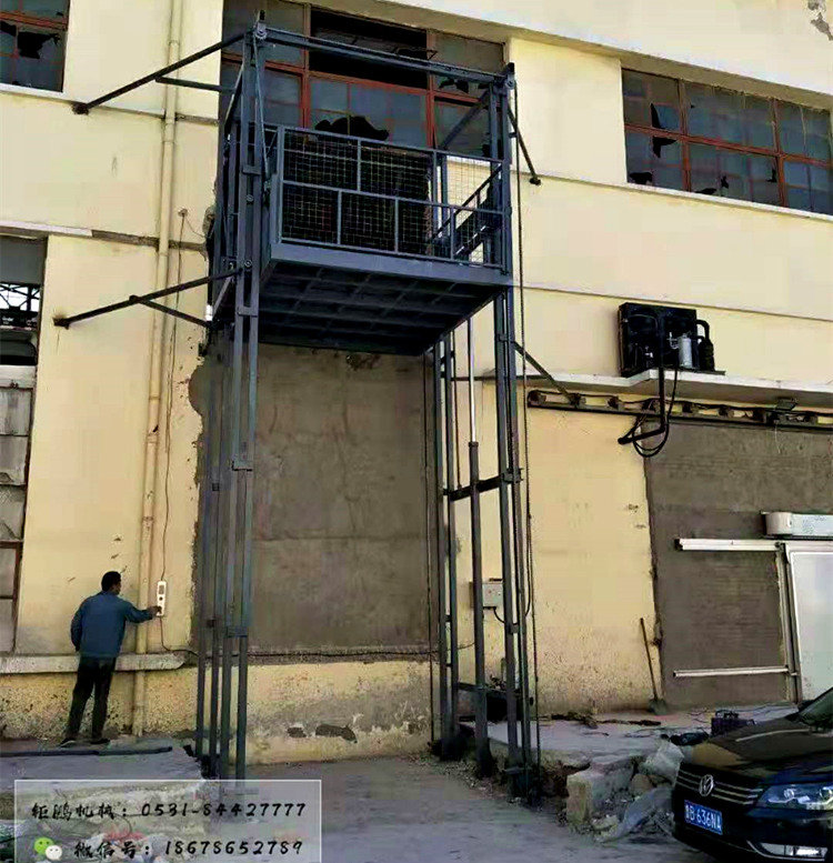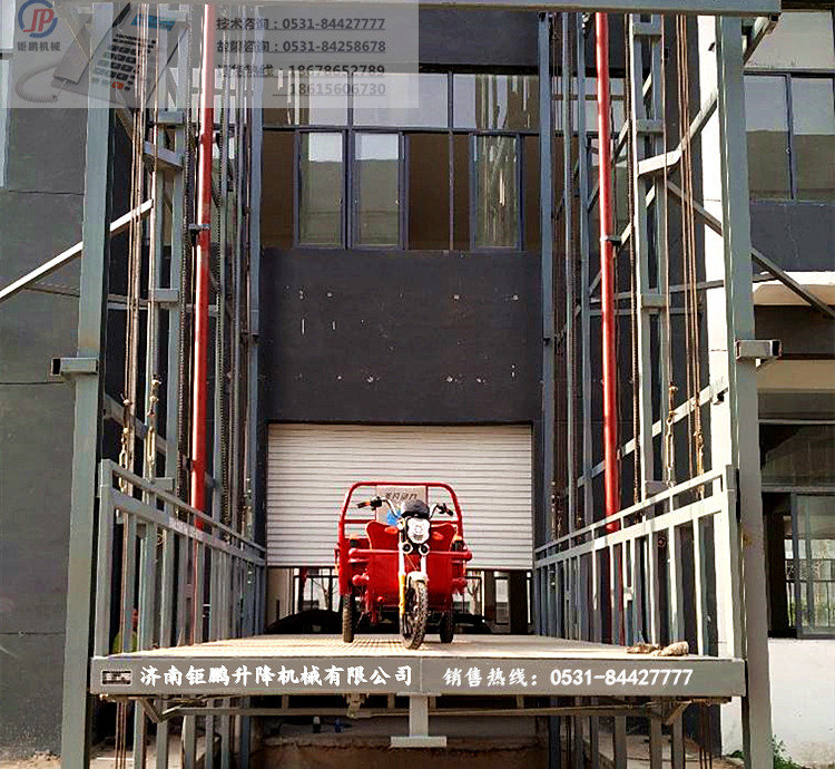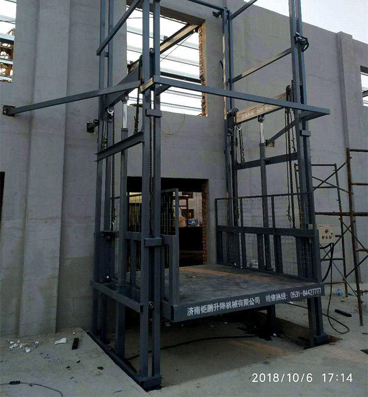 導軌式升降機是一種非剪叉式液壓升降機械設備。用于二三層工業廠房、倉庫、酒樓樓層間的貨物傳輸。最低高度在150-300mm,尤其適合不能開挖地坑的工作場所。并且無須上部吊點,形式多樣化(單柱,雙柱,四柱)。設備運行平穩,導軌式升降機的導軌一般為槽鋼、H鋼,方管焊接制成,操作簡單可靠,貨物傳輸經濟便捷。